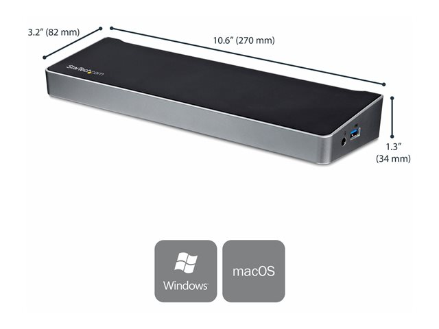 StarTech.com 4K USB-C-docka för tre skärmar med 5 USB 3.0-portar