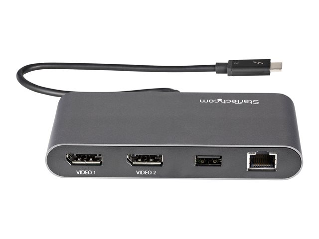 Produktbeskrivning StarTech.com Thunderbolt 3 Mini Dock - Portable Dual Monitor w/ DP 4K 60Hz - 2X USB-A Hub (3.2/2.0), GbE - 28cm Cable - TB3 Multiport Adapter - Mac/Windows - Upgraded Version of TB3DKM2DP (TB3DKMDPL) - dockningsstation - Thunderbolt 3 - 2 x DP - 1GbE Typ av produkt Dockningsstation Dockningsgränssnitt Thunderbolt 3 Videogränssnitt 2 x DP Dimensioner (BxDxH) 6.9 cm x 12.4 cm x 2.7 cm Vikt 148 g Färg Svart & silver Nätverk Gigabit Ethernet Tillverkarens garanti 3 års garanti -
