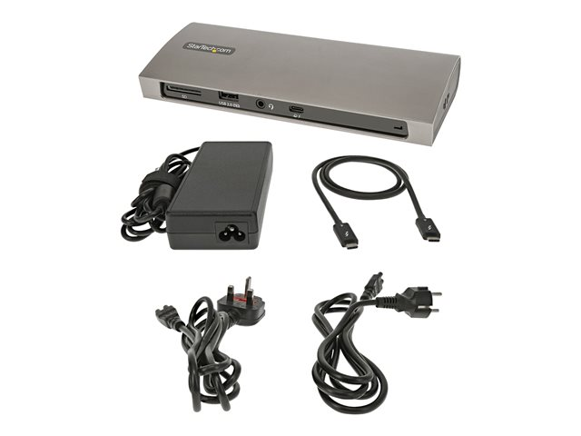 Produktbeskrivning StarTech.com Thunderbolt 4 Dock, 96W Power Delivery, Single 8K/Dual Monitor 4K 60Hz, 3xTB4/USB4 ports, 4xUSB-A, SD, GbE, Thunderbolt 4 Docking Station for Windows or TB3 MacBook, 0.8m - dockningsstation - Thunderbolt 4 - 3 x Thunderbolt - 1GbE Typ av produkt Dockningsstation Dockningsgränssnitt Thunderbolt 4 Videogränssnitt 3 x Thunderbolt Dimensioner (BxDxH) 19.4 cm x 8.4 cm x 2.9 cm Vikt 1 kg Färg Svart, grå Lokalisering Nordamerika Nätverk Gigabit Ethernet Strömtillförsel Strömadapter AC 100-240 V Tillverkarens garanti 3 års garanti -
