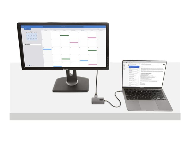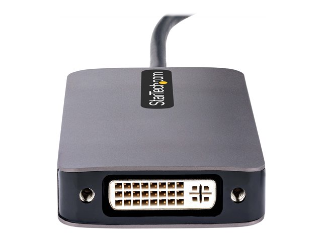 Produktbeskrivning StarTech.com USB C Video Adapter, USB C to HDMI DVI VGA Adapter, Up to 4K 60Hz, Aluminum, Multiport Video Display Adapter for Laptops, Thunderbolt 3/4 Compatible, USB Type C Monitor Adapter - USB C Travel Adapter (118-USBC-HDMI-VGADVI) - dockningsstation - USB-C - VGA, DVI, HDMI Typ av produkt Dockningsstation Dockningsgränssnitt USB-C Videogränssnitt VGA, DVI, HDMI Dimensioner (BxDxH) 4.5 cm x 8.5 cm x 1.4 cm Vikt 73 g Färg Grå Tillverkarens garanti 3 års garanti -