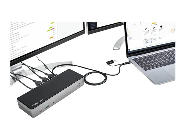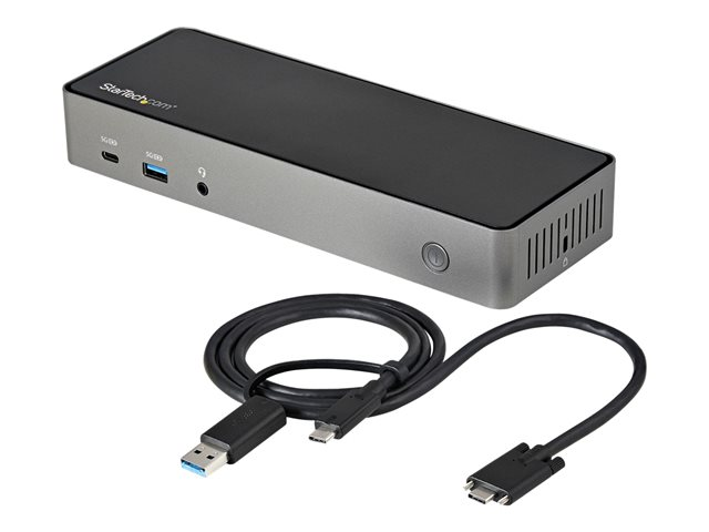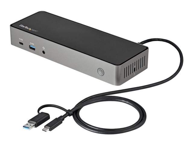 Produktbeskrivning StarTech.com USB-C- och USB-A-dockningsstation - Universal hybriddockningsstation för trippla bildskärmar, DisplayPort och HDMI 4K 60 Hz - 85 W strömförsörjning, 6x USB-hubb, GbE, Ljud - USB 3.1 Gen. 2, 10 Gbit/sek - dockningsstation - USB-C - 3 x HDMI, 3 x DP - 1GbE Typ av produkt Dockningsstation Dockningsgränssnitt USB-C Videogränssnitt 3 x HDMI, 3 x DP Dimensioner (BxDxH) 8.4 cm x 23.3 cm x 3.7 cm Vikt 365 g Färg Grå, svart Nätverk Gigabit Ethernet Strömtillförsel Strömadapter AC 100/240 V 85 Watt Effekt Tillverkarens garanti 3 års garanti -