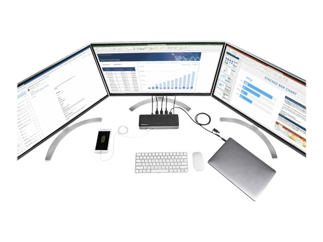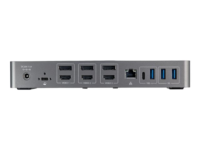 Universal hybriddockningsstation för trippla bildskärmar, DisplayPort och HDMI 4K 60 Hz - 85 W strömförsörjning, 6x USB-hubb, GbE, Ljud - USB 3.1 Gen. 2, 10 Gbit/sek - Dockningsstation - USB-C - 3 x HDMI, 3 x DP - 1GbE - 85 Watt