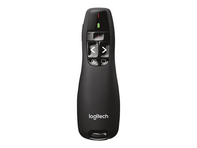 Produktbeskrivning Logitech Wireless Presenter R400 presentationsfjärrkontroll Typ av enhet Presentationsfjärrkontroll Dimensioner (BxDxH) 11.55 cm x 3.78 cm x 2.74 cm Vikt 57 g Anslutningsteknologi Radio Enheter som stöds PC Max arbetsavstånd 15 m Batteri Standardbatteri - AAA-typ alkaliskt Microsoft-certifiering Compatible with Windows 7 Tillverkarens garanti 3 års garanti -