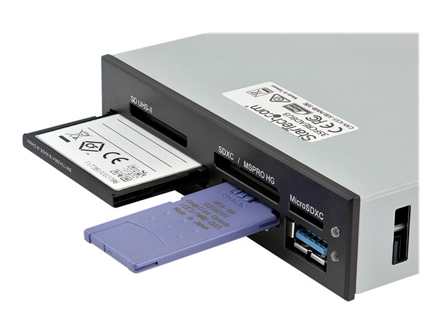 Produktbeskrivning StarTech.com Intern USB 3.0 multikortläsare med stöd för UHS-II - kortläsare - USB 3.0 Produkttyp Kortläsare - intern Minneskort som stöds CompactFlash-kort typ I, CompactFlash-kort typ II, Memory Stick, Memory Stick PRO, MultiMediaCard, SD-minneskort, Memory Stick Duo, Memory Stick PRO Duo, miniSD, microSD, SDHC-minneskort, Memory Stick Micro (M2), microSDHC, SDXC-minneskort, Memory Stick XC, Memory Stick PRO-HG Värdgränssnitt USB 3.0 Erforderligt fack 3,5-tums intern Färg Svart Egenskaper LED-indikator Tillverkarens garanti 2 års garanti -