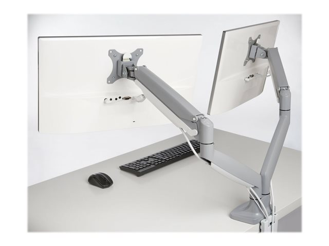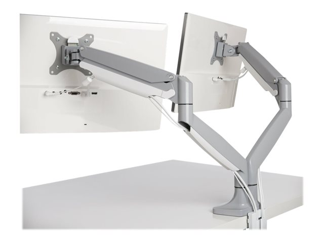 Monteringssats - justerbar arm - för 2 monitorer - metall - silvergrå - skärmstorlek: 13"-32" - C-klämma, skyddshylsa, disk-monteringsbar