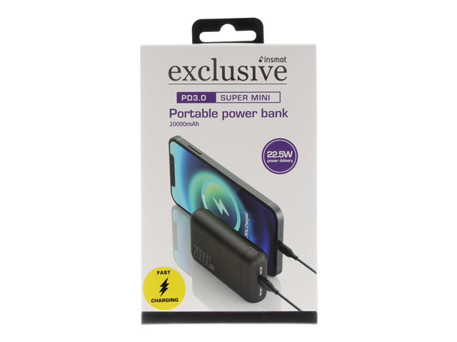 Produktbeskrivning Insmat strömförsörjningsbank - Li-pol - USB, 24 pin USB-C - 22.5 Watt Typ av produkt Strömförsörjningsbank Dimensioner (BxDxH) 7.1 cm x 11.5 cm x 2.8 cm Vikt 360 g Typ av utkontakt Total 2: USB, 24 pin USB-C Batteri Litiumpolymer - 20000 mAh Effekt 22.5 Watt Strömenhetsinformation - 24 pin USB-C with Power Delivery - 20 W