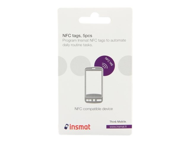 Produktbeskrivning Insmat - NFC-etikettsats Typ av produkt NFC-etikettsats Förpacknings innehåll 5 NFC-klistermärkesetiketter (vita) -