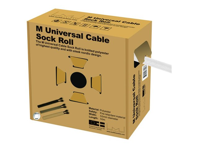 Produktbeskrivning Multibrackets M Universal Cable Sock Roll 55 mm x 50 m - kabelorganiserare Typ av produkt Kabelorganiserare Produktmaterial Polyester Dimensioner (BxDxH) 55 mm Längd 50 m Vikt 2.25 kg Färg Vit Tillverkarens garanti 3 års garanti -