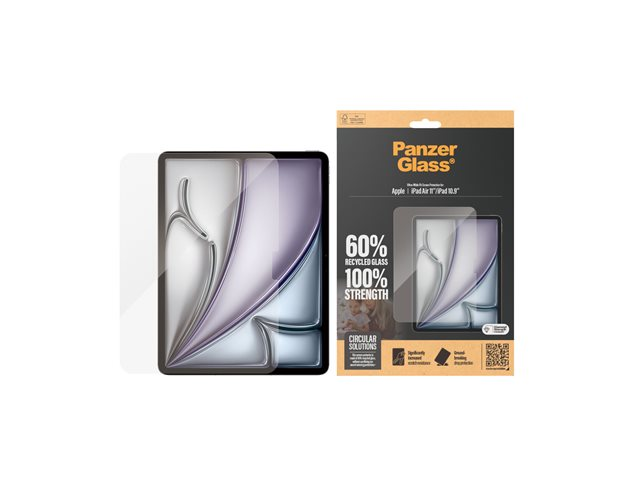 Produktbeskrivning PanzerGlass - skärmskydd för surfplatta - ultrabred passning Typ av produkt Skärmskydd - glas Avsedd för Surfplatta Skydd Reptålig, stötsäkert, fingeravtrycksresistent, kladdsäker Produktmaterial 60 % återvunnet glas Designat för Apple 10.9-inch iPad (10:e generation); 11-inch iPad Air (M2, M3) -