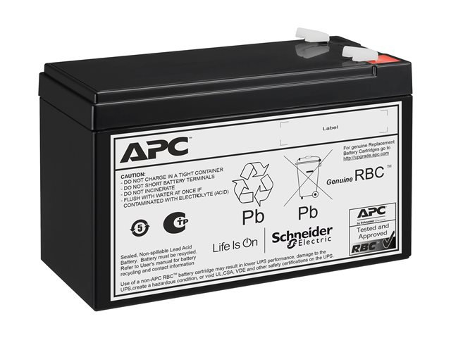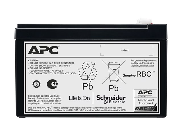 Produktbeskrivning APC - UPS-batteri - VRLA - Bly-syra - 7 Ah Typ av enhet UPS-batteri Stativstorlek 0U Vikt 1.84 kg Batteri Bly-syra - 7 Ah Antal batterier 1 Dimensioner (BxDxH) 6.5 cm x 15.1 cm x 9.9 cm Tillverkarens garanti 2 års garanti -