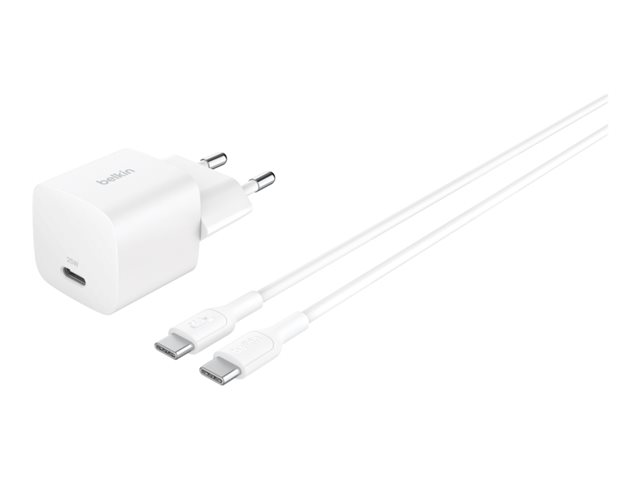 Produktbeskrivning Belkin BoostCharge strömadapter - PPS-teknik - USB-C - 25 Watt - med USB-C-kabel (1m) Typ av produkt Strömadapter Kombinerad med USB-C-kabel (1m) Utformad för Surfplatta, bärbar spelkonsol Typ av utkontakt USB-C - på kabel: USB-C Nätspänning AC 100-240 V (50/60 Hz) Snabbladdningsteknik Power Delivery 3.1 + PPS, Fast Charge Effekt 25 Watt Kablar USB-C till USB-C-kabel - 1 m Återvunnet produktinnehåll 75 % - tillverkad av återvunnen konsumentplast Tillverkarens garanti 2 års garanti -