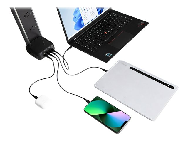 GaN - 100 Watt - PD - 4 utdatakontakter (2 x USB-C, 2 x 9-stifts USB typ A) - svart
