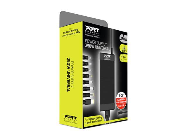 Produktbeskrivning PORT Connect - strömadapter - universell - 250 Watt Typ av enhet Strömadapter - extern Vikt 686 g Lokalisering Europa Inspänning AC 100-240 V Utspänning 20 V Effektkapacitet 250 Watt Inkluderade tillbehör 8 kontaktspetsar Dimensioner (BxDxH) 6.3 cm x 4.2 cm x 16.5 cm Tillverkarens garanti 2 års garanti -