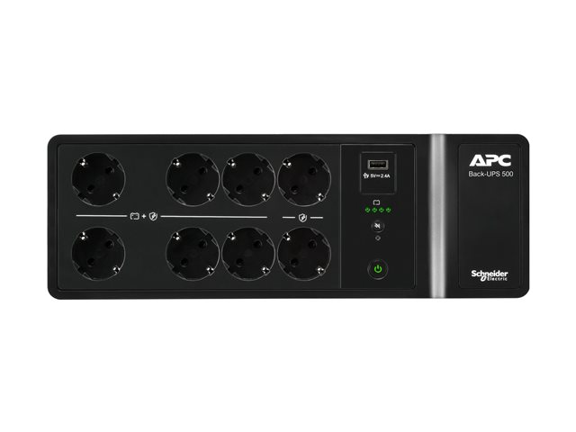 Produktbeskrivning APC Back-UPS - UPS - 300 Watt - 500 VA Typ av enhet UPS - kan monteras på vägg/underlag Inspänning AC 230 V Utspänning AC 230 V Effektkapacitet 300 Watt / 500 VA Inmatningsanslutningar 1 x power CEE 7/7 Utdatakontakter 2 x power CEE 7/3 (spänningsutjämnare)
