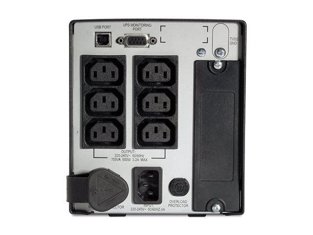 Produktbeskrivning APC Smart-UPS 750 - UPS - 500 Watt - 750 VA Typ av enhet UPS - extern Vikt 13.2 kg Inspänning AC 230 V Utspänning AC 220/230/240 V ± 5% Effektkapacitet 500 Watt / 750 VA Inmatningsanslutningar 1 x ström IEC 60320 C14 Utdatakontakter 6 x power IEC 60320 C13 Batteri Bly-syra Batterimodell Intern Antal batterier 1 Driftstid (upp till) 4.8 min på full laddning Nätverk USB Färg Svart Dimensioner (BxDxH) 13.7 cm x 35.8 cm x 15.7 cm -