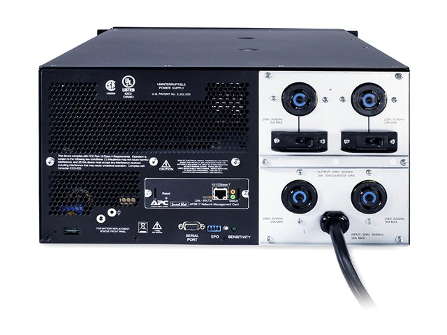 2 x ström NEMA L6-30RBatteri Bly-syra Batterimodell Intern Antal batterier 2 Driftstid (upp till) 9.4 min på full laddning Nätverk Ethernet 10/100, RS-232 Protokoll för administration på distans SNMP, Telnet, HTTP, HTTPS, WAP Färg Svart Dimensioner (BxDxH) 48.3 cm x 66 cm x 22.2 cm Tillverkarens garanti 2 års garanti -